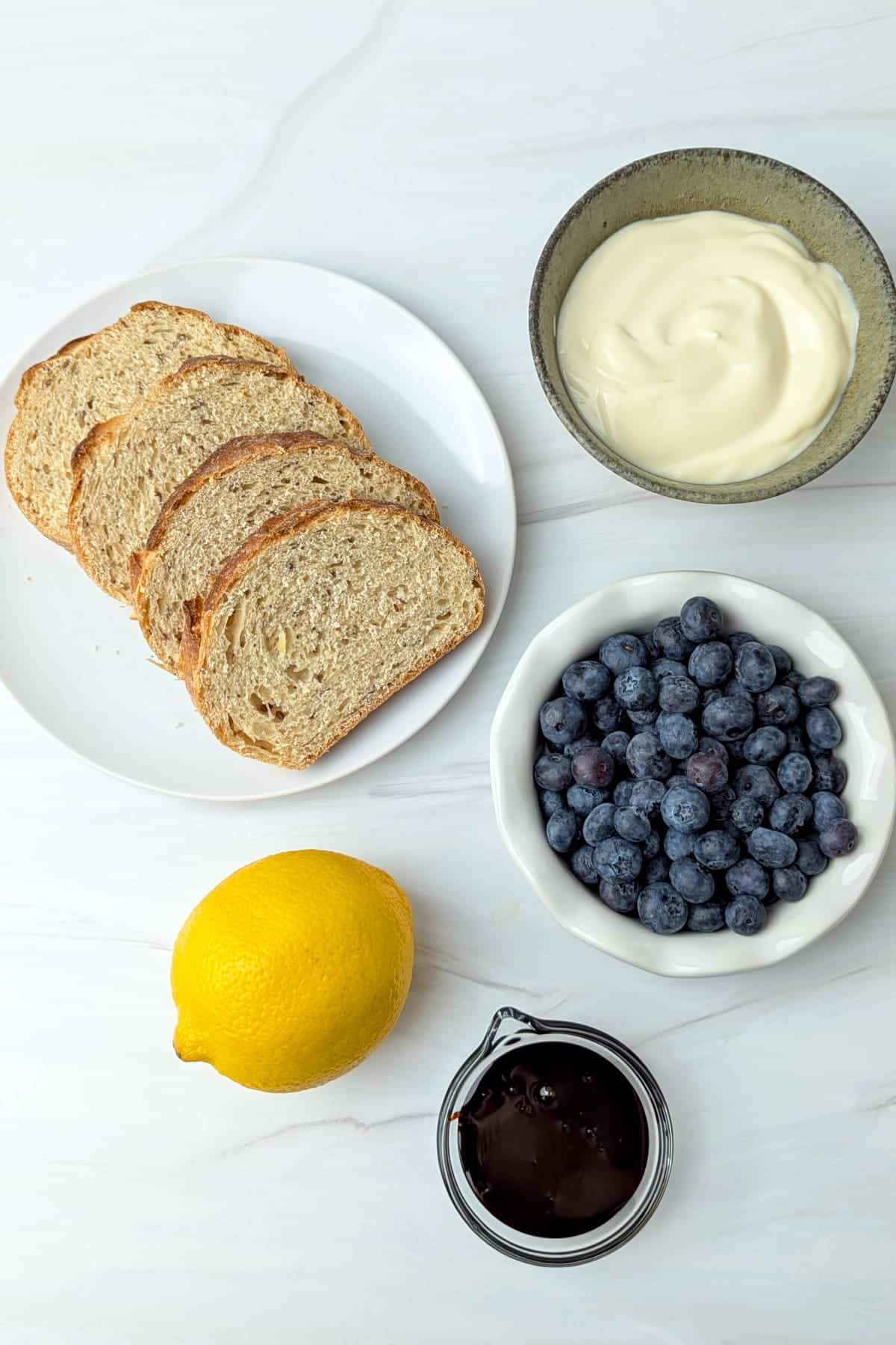 The ingredients for this blueberry toast, ready to assemble: